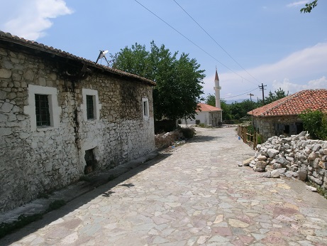 Wie kommt man hin? Man fährt über die neue Mesi-Brücke und hält sich ab jetzt links, das einspurige Asphaltband windet sich um den Berg herum nach oben. Der Weg ab dem Tor bis zu den Häusern ist ebenfalls neu gepflastert. In einem Häuschen auf der rechten Seite betreibt der Bewohner eine winzige Museums-Bar (nur albanisch-sprachig). In dem Haus hat einst Edith Durham übernachtet.