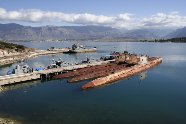 Historische Aufnahmen aus meinem Archiv belegen ziemlich klar: (1) die alten Russenkisten lagen mal auf der anderen Seite vom Pier und waren (2) viel kürzer. Das ist neuer Besuch, und der ist auch nicht verwunderlich: Wie die albanischen Elite-Einheiten im Irak hat auch diese Militärbasis ihre Einordnung in die NATO-Strategie gefunden. Schon die Osmanen schätzten die besondere Kampfstärke albanischer Einheiten.