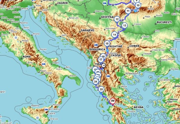 unsere planung für die vespa-tour 2026 sieht derzeit übrigens wie folgt aus....ist nur die grobplanung. feinplanung erfolgt von tag zu tag... werden wahrscheinlich bis patras in griechenland weiter-fahren, um dort die fähre zurück nach venedig zu nehmen. die fähre durres-triest fährt ja seit ein paar jahren nicht mehr. alternativ geht igoumenitsa-venedig (haben wir das letzte mal genommen). da muss man aber irgendwann um 4/5 uhr morgens am fährhafen sein. ist in patras eleganter, da fährt das schiff abends ab. und man hat dann zwei nächte an bord.