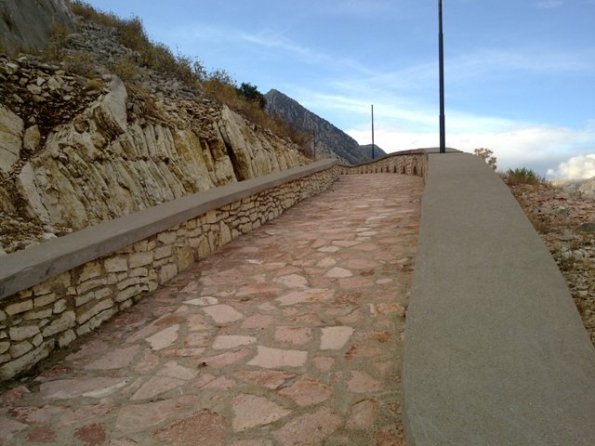 Die Ruinen von Kalaja e Borshit (40,0697 19,8562) in der Nähe von Borsh an der Strasse von Borsh nach Kuc über Ftere z.B. haben einen nagelneuen, sehr schön gepflasterten Fussweg bekommen. So ist zumindest schon mal der Zugang ermöglicht, der auch für Arbeiten an der Ruine nötig ist. Die Strasse dorthin ist jedoch noch schlecht befahrbar, zumindest mit einem PKW. Es wird also wohl nicht alles in den Strassenbau gesteckt!