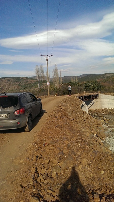 von 41.928851, 19.749818 bis hier 41.866365, 19.834963 (siehe Bild 7 - kurz vor der Albanie Bridge über den Fluss Gjazit. Da hierzu auch meinerseits Unklarheiten bezüglich der Brücke bestanden, kann ich hierzu folgende Information geben. Auf Luftbildaufnahmen (zB bei google) ist hier ein nur ein unvollendetes Stahlgerüst zu sehen. Die Brücke ist jedoch inzwischen aufgebaut und intakt (15 t). Die Gegend wird nun - aus meiner Sicht - landschaftlich noch abwechslungsreicher.)