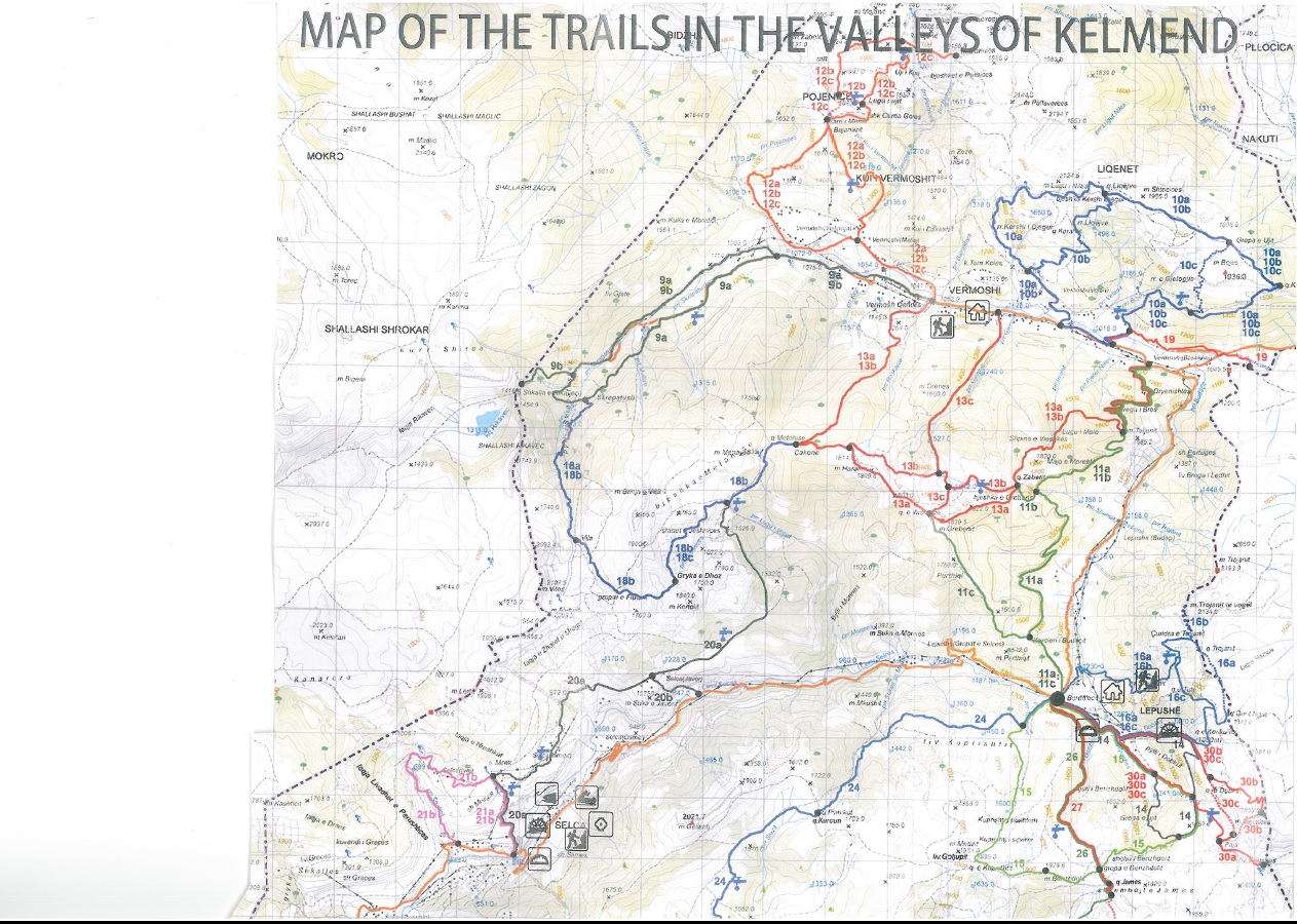 Eine Faltkarte mit dem Titel Kelmend, the land of the living past ist u.a. im Infopoint in Tamara kostenlos erhältlich. Enthalten ist neben einer Übersicht der Gästehäuser eine Liste der Wanderwege und eine gute Karte: