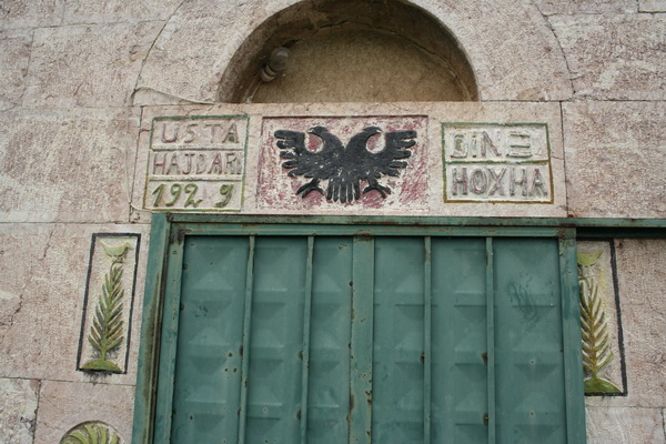 In Deutschland hatten wir gegen Ende des 19. Jahrhunderts den "Historismus", als nostalgischen Versuch, die Größe der Ritterzeit zumindest architektonisch wieder auferstehen zulassen, ohne dass es noch eine funktionale Begründung dafür gab. Es entstanden zahlreiche prächtige Bauten, die häufig wie uralte Burgen ausschauen, tatsächlich aber kaum 150 Jahre alt sind. In Albanien scheint es eine ähnliche Epoche gegeben zu haben, denn die Kulla trennen sich tatsächlich in solche die 200-300 Jahre auf dem Buckel haben, also echte Wehrbauten sind, und solche die in den 20er und 30er Jahren des 20. Jahrhunderts gebaut wurden und den Stil eigentlich überflüssiger Weise nachgeahmt haben. Für den Laien scheinen sie alt und bereichern damit die touristische Romantik. Aber gewöhnlich steht das Erbauungsdatum irgendwo. Ich füge mal zwei weitere Beispiele an, das zweite (Dorf Muhurr bei Peshkopi) mit Erbauungsinschrift von 1929. Das erste stammt aus dem Dorf Lis bei Burrel, die Inschrift dort lautete auf Mahmud Barqi, 1935.