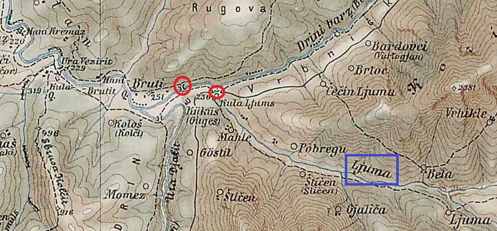Die Lösung findet sich auf der am 11.03.2016 hier im Thema eingestellten Übersichtskarte der Karte der Brücken von Kukes (vor dem Bau des Stausees) Ura e Nermjeme ne Kukes te Vjeter oder auch Ura e Lumësvolkergrundmann hat geschrieben:Na, da wird es wohl am Drin sein. Irgendwo bei Kukes.