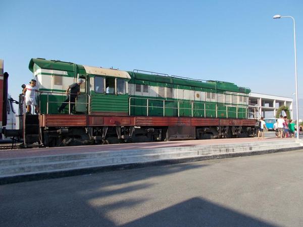 Sicherheitshalber starten wir am nächsten Tag doch etwas früher vom Hotel. Abmarsch 8 Uhr 30, also 45 Minuten Zeit zum Hingehen. Nach etwa 15 Minuten kommt die Station in Sichtweite, wir sehen, dass dort auch schon eine Menge Leute neben dem Gleis lagern. Und im nächsten Moment hören wir das heisere Röhren eines Zuges hinter uns. Unseres Zuges? Ja, tatsächlich, der geht also doch um 8.45 statt 9.05. Welcher Nichteingeborene kann das wissen? Egal, kurzer Sprint entlang der Gleise, die Schaffnerin brüllt uns was entgegen, was offenbar soviel wie "Tempo, Tempo" bedeutet. Eine Tür ist noch offen, wir rein, und ab gehts.