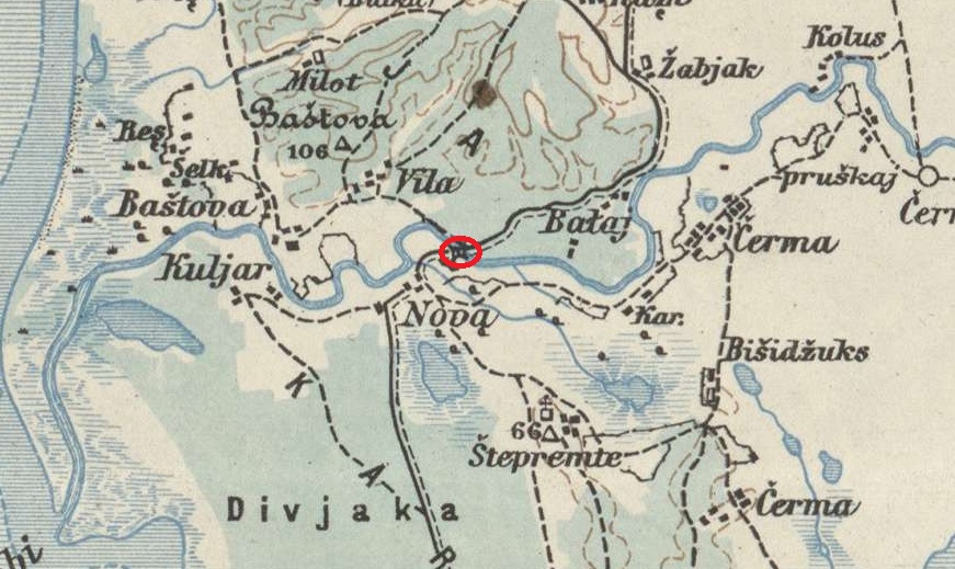 Die alte k. & k. Karte von Mitteleuropa (1917) zeigt die wichtige Verbindung von Divjaka nach Norden in der Nähe des Dorfes Sulzotaj. Es wird spekuliert, dass dies ein antiker Flussübergang zwischen Apollonia und Durres gewesen sein könnte.