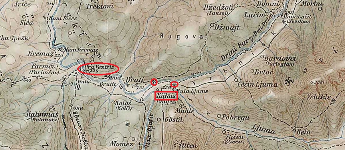 Ura e Frëngut oder Ura e Kaurit sind die gesuchten Namen, das zugehörige Dorf Dorf Poshnja liegt etwas abseits der Nationalstraße Lushnja-Berat, 3 km vor Ura Vajgurore. Lars hat's herausgefunden.