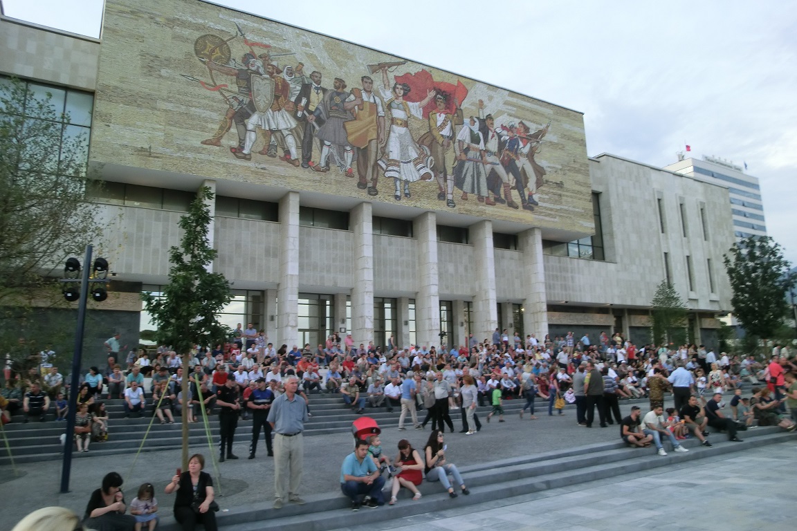 Der Skanderbeg-Platz wird insgesamt von diversen Hochhäusern flankiert werden. Am ehemaligen Naturwissenschaftlichen Museum wird ebenfalls ein Hochhaus hochgezogen, der ehemalige Direktor Prof. Idriz Haxhiu hat mit viel Herzblut dagegen gekämpft. Aber wirtschaftliche Interessen stehen über solchen Bildungseinrichtungen. Immerhin hat dieses Museum ja bereits einen neuen Platz gefunden, und keinen schlechten (wir berichteten im Thema Museen).