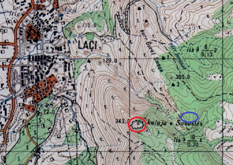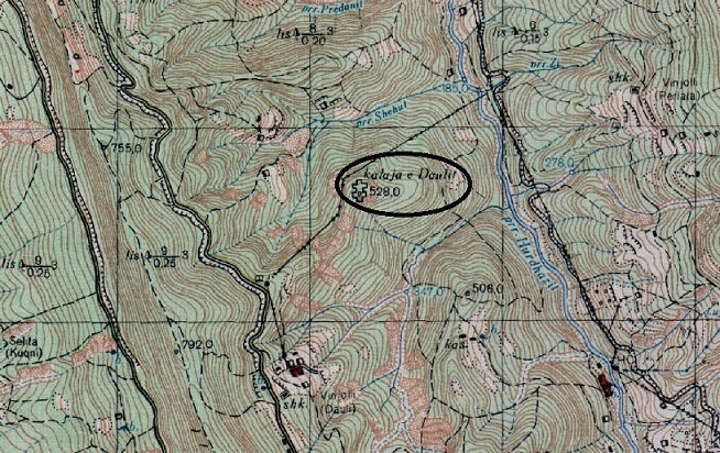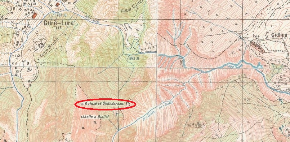 Ich machte mich auf Karten auf die Suche nach der Burg und wurde fündig. Die albansiche Topographische Karte nennt sie