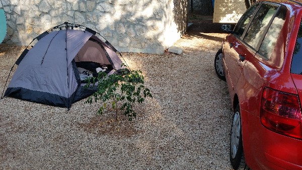 Ums kurz zu machen: Bis etwa Zadar geht es ratzfatz, dann machen uns allerdings die Waldbrände rund um Zadar & Split einen Strich durch die Rechnung. Autobahn gesperrt, Umleitungen, 5 Stunden Stau und im besten Fall Stop&Go. In Biograd ist deshalb Endstation für uns. Da wir immer so ein Minizelt dabei haben (Regenschirmzelt), Nacht am Campingplatz "Mia". Alle sehr basic dort, aber supersaubere Duschen und Klos. 20 Euro sind dafür sicher okay - bin aber kein Camping-Spezialist. Gehzeit zum Meer etwa 5 Minuten, also was will man mehr.
