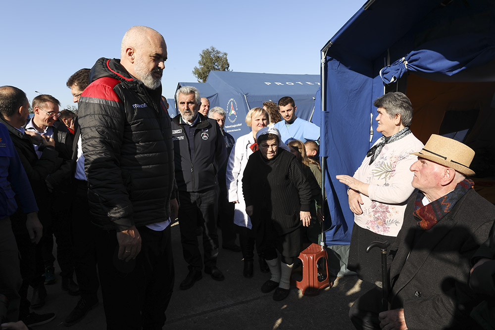 Edi Rama besucht Zeltlager in Vora anfangs Dezember nach dem schweren Erdbeben vom November 2019