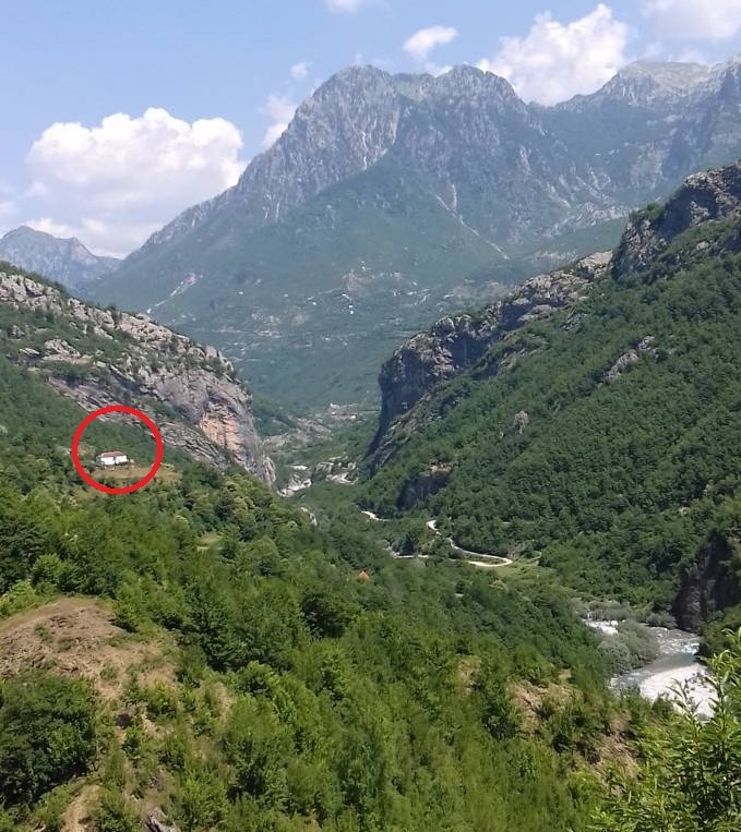 Ein interessantes Gästehaus befindet sich auf der Theth Südroute in aussichtsreicher Hanglage beim Dorf Lotaj, eine Ecke, wo es noch an Gästehäusern fehlt 42.286266,19.794888 (auf Google Maps)