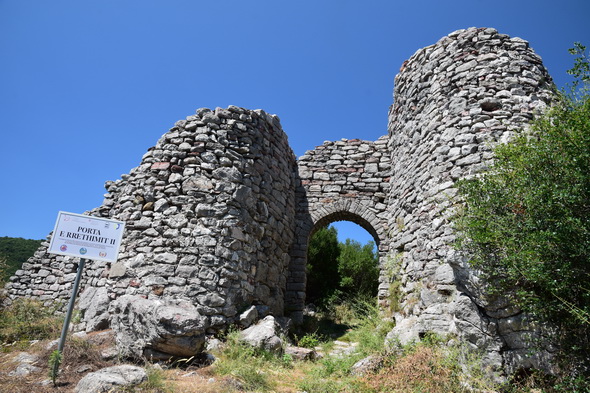 Wir sind nach Rragam gefahren und sind zufällig auf dem Grundstück 42.065919,19.603803 (auf Google Maps) (dort steht inzwischen ein neues Haus). Der besitzer (außerhalb der Ferien Schulbusfahrer) hat schnell einen sehr netten Fischer organisiert, der uns 30 min später an der Staumauer abholte (in der Zwischenzeit gab es im Haus Raki zum trinken und Obst zum essen) und uns für 1.500 lek zur Insel und zurück schipperte sowei den Inselrundgang mit uns ging. Er hätte uns auch noch gerne Badebuchten gezeigt und sie angefahren, doch wollten wir noch weiter fahren). Der 14-jährige Sohn des Schulbusfahrers diente während der Bootstour als albanisch-englisch-Übersetzer und freute sich über ein Taschengeld.