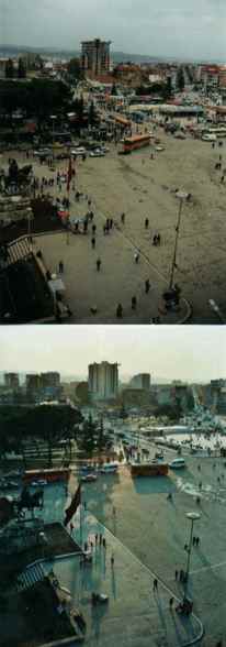 Veränderungen Finde die 10 Unterschiede Das erste Bild zeigt Tiranas zentralen Skanderbeg Platz im November 1997. Das zweite Bild stammt aus dem Sommer 2000. Anhand solcher Vergleiche lässt sich feststellen, wie schnell sich Tirana verändert. Innert weniger Jahre hat Tirana eine Skyline von etlichen Wohnblocks erhalten. Immer mehr Plakatwände tauchen auf. Die vielen kleinen illegalen Kioske und Cafés mussten hingegen den neuen Parkanlagen weichen. Die Staatsmacht greift allmählich durch. Die zehn Unterschiede, beliebtes Rätselspiel in vielen Magazinen, sind hier leicht gefunden. Während Tirana, Kapitale und Wirtschaftsmetropole des Landes, sich oft innert Monaten verändert, sieht es auf dem Land hingegn noch oft aus wie vor 15 Jahren. Die Bunker stehen noch, und kaum etwas wurde erneuert. Einzig die verfallenen Landwirtschafts-Genossenschaften, die verblassten Parteiparolen und der Einzug des Abfalls sind Zeugen des Wandels. Lars Haefner - Probeabonnements