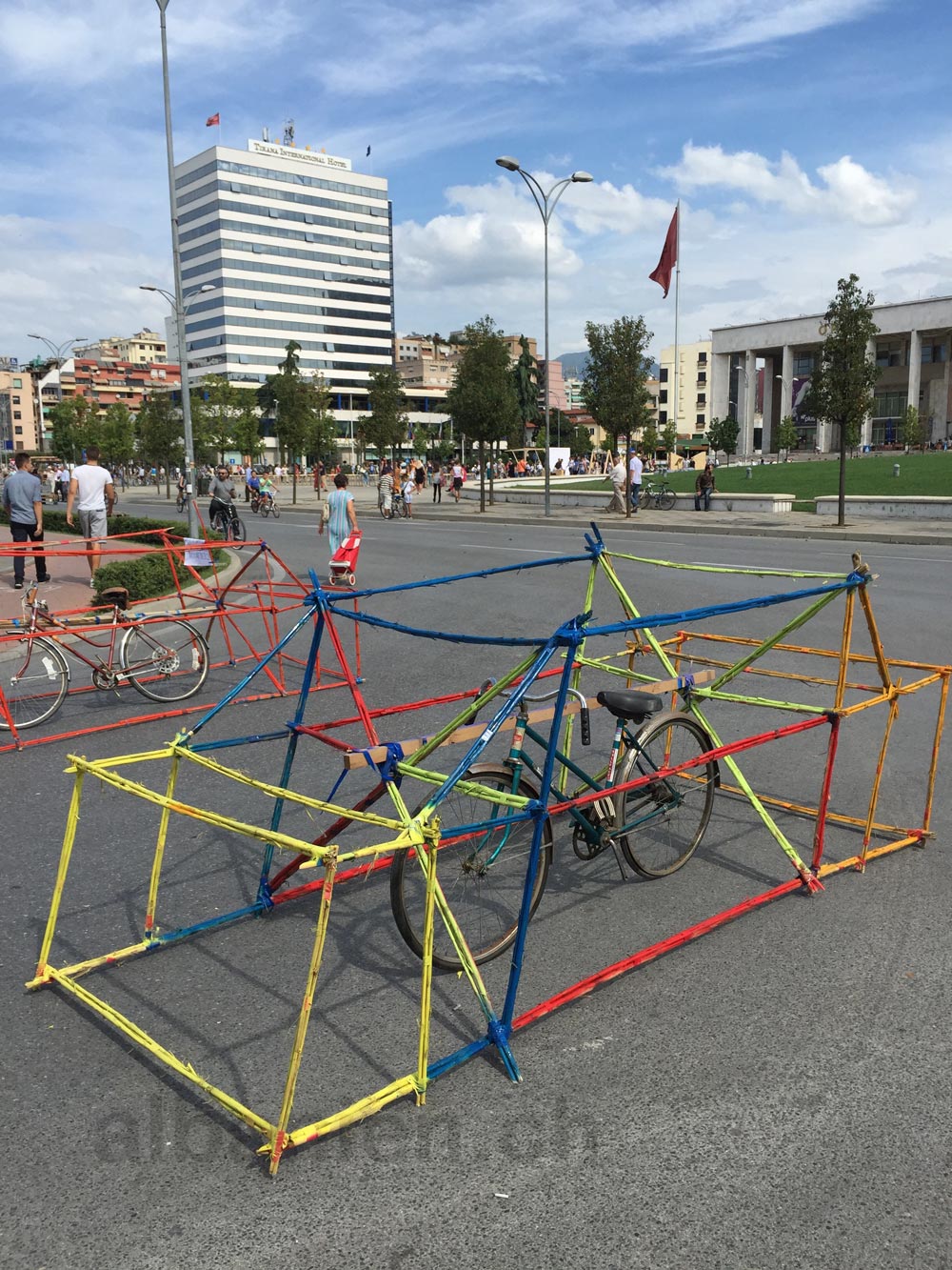 Umweltaktivisten protestieren gegen zunehmenden Autoverkehr (Umwelttag »Tirana pa makina«, September 2015)