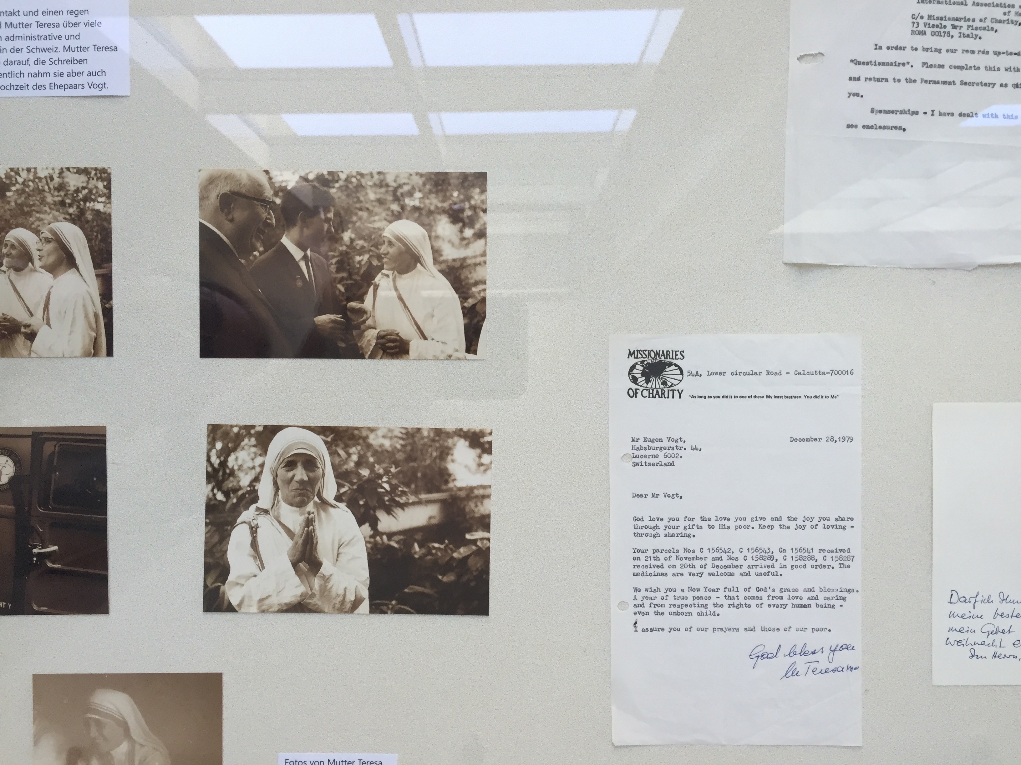 Ausstellung über Mutter Teresa – September 2016: Privatfotos und Korrespondenz der Ordensgründerin