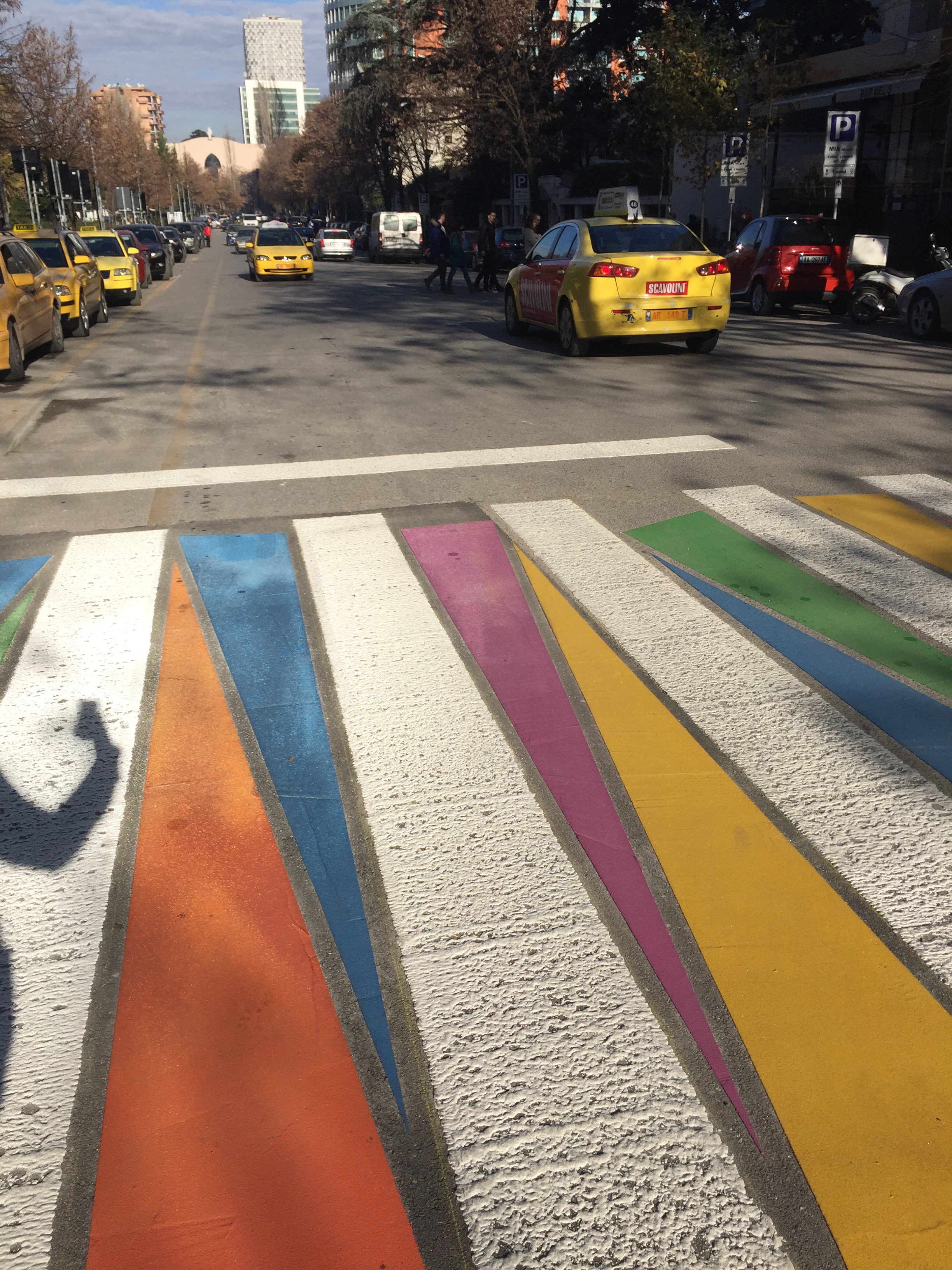 Tirana musikalischer Fussgängerstreifen Tirana farbiger Fussgängerstreifen