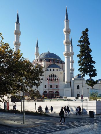 Die fortgeschrittenen Bauarbeiten an der neuen Moschee im Stadtzentrum von Tirana lassen erkennen, wie dieser Sakralbau das Stadtbild von Tirana verändern wird. Schon in der Planung wurde erste Kritik laut: Die vielen Bleistiftminarette und Kuppeln »à la mode Turque« verweisen auf einen sehr traditionellen Islam, wie ihn die türkischen Finanziers des Projekts vertreten. Und zwischenzeitlich ist auch klar, dass die neue Moschee gross ist – sehr gross. Das nebenstehende Gebäude des albanischen Parlaments wirkt im Vergleich winzig – wie ein kleiner Nebenbau.