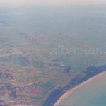 Das erste Foto zeigt den Strand von Golem – das Südenede der Bucht von Durrës – und Kavaja im Hintergrund. Das zweite ist eine Luftaufnahme von Vora zwischen Tirana und Durrës bevor die Autobahn gebaut worden war (Pläne gab es schon damals).