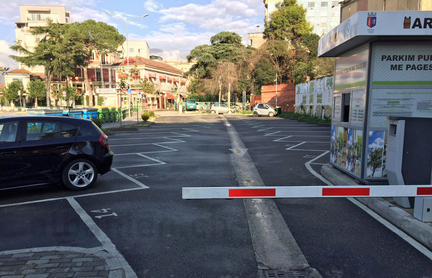 Parkplatz in Tirana: kein Verkehr wegen Corona-Virus