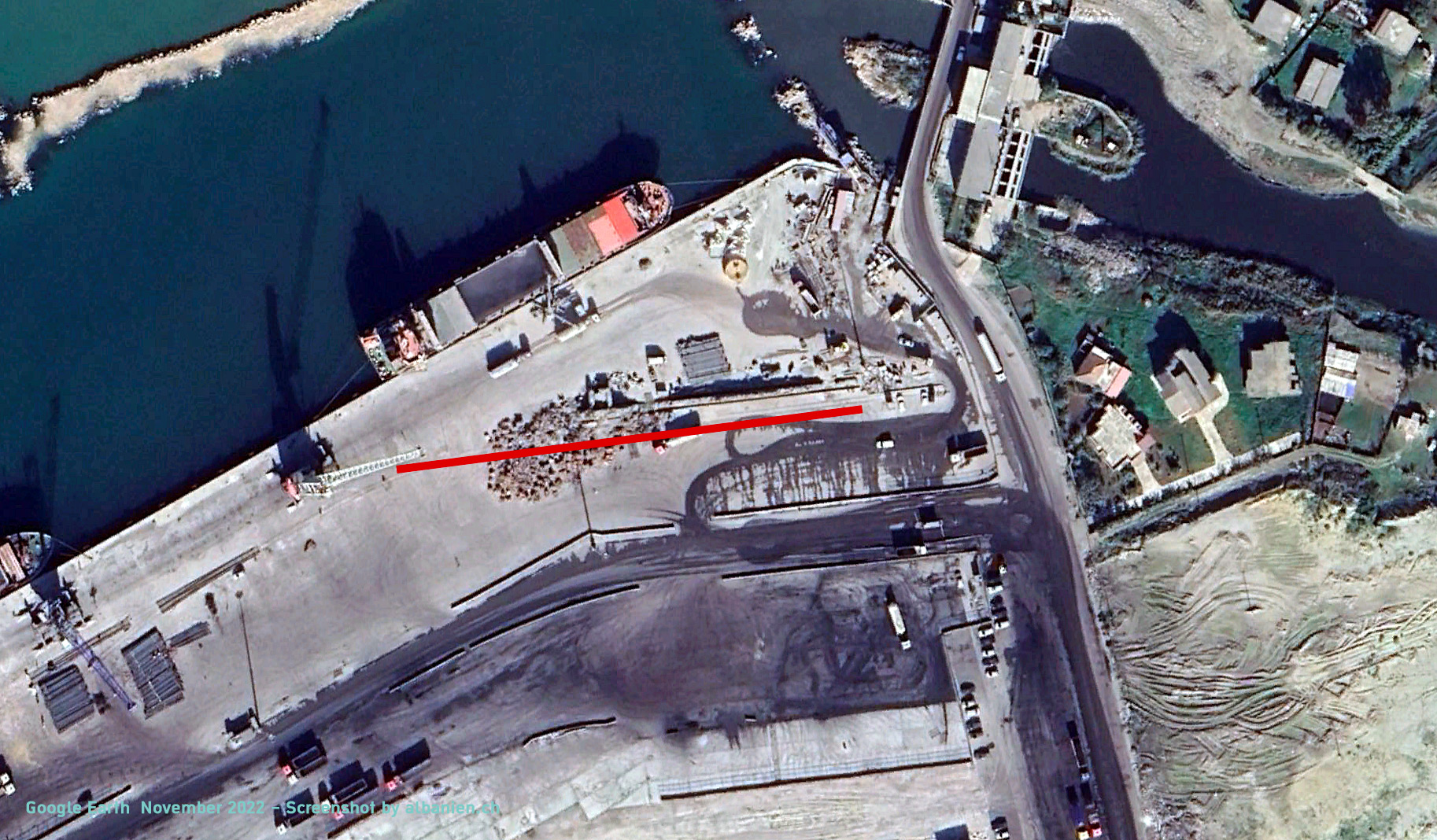 Zubetonierter Hafen im Herbst 2022 mit der Stadtmauer dazwischen